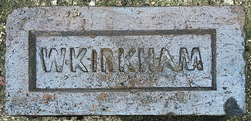 Major Kirkup, who was a farmer at Lanchester in 1841, decided to try his fortune as a brick manufacturer and went into partnership with F Renwick at Low Shitlington. That partnership ended in 1851 and by 1850 Kirkup was already making firebricks at Monkwearmouth. He then moved his business to Jarrow in 1854 but that business ended in bankruptcy in late 1856. The works lease was sold in 1857. Kirkup died in January 1859 at Monkwearmouth. Photo by Steven Tait who found this at Hebburn, not far where this brick was made at Jarrow.