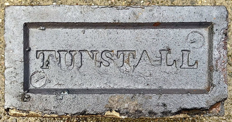 Derek Barker writes: By accident I recently stumbled on the works that produced these bricks in Milkwell Lane, Corbridge. Walkers apparently opened in the nineteenth century and closed in 1914. Today the site contains two beautiful bottle-kilns, the remains of Newcastle kilns and the remains of two down-draught kilns extensively vitrified, in addition to chimneys and ancillary buildings. Products such as housebricks, firebricks, tiles and sanitary tubes still litter the surrounding area. The bottle-kilns are grade II* listed structures and scheduled ancient monuments meaning that legally nothing must be removed from the site. Photo by Steven Tait.