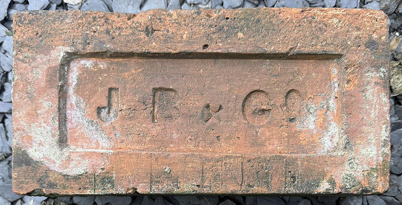 The may have a connection with the Adderley Park Brick Company Ltd, Birmingham, as it was found in a wall with similar bricks marked for that company. Photo by Andy Tunstall.