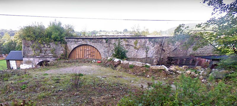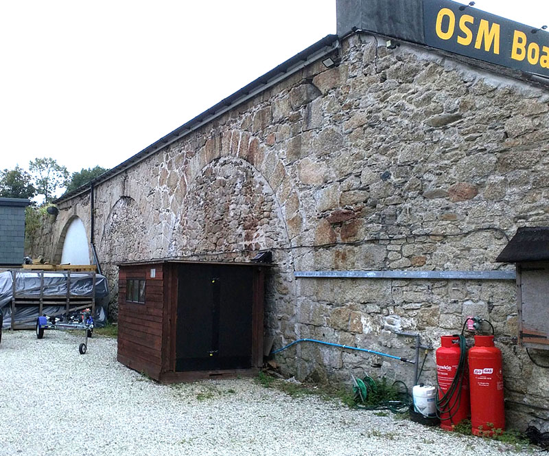 | A single kiln, although the Ordnance Survey maps suggest two. The notable feature is the large store built onto the side of teh kiln with high arched entrances. This is now used as workshops. | |